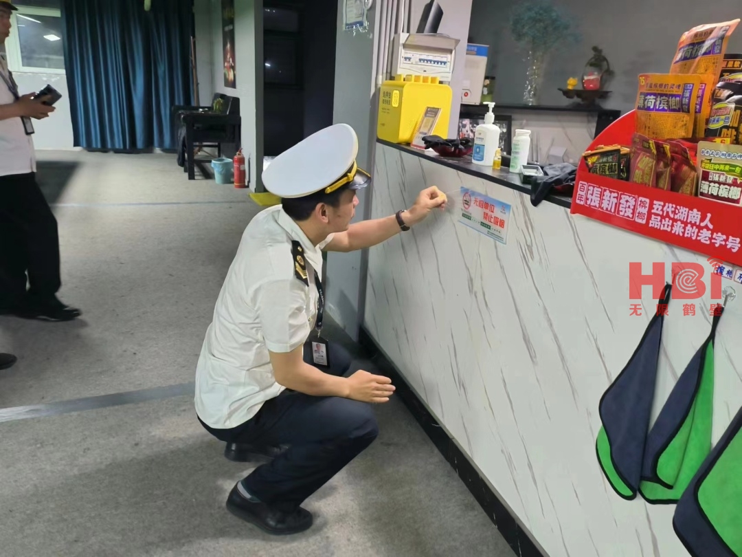 本次行动,执法队伍四组同时行动,分别对淇滨区、开发区、城乡一体化示范区的宾馆、饭店、洗浴场所以及理发店、网吧、KTV等公共场所开展禁烟执法检查,检查内容还包括各场所控烟宣传、禁止吸烟警语和标识张贴等情况。
