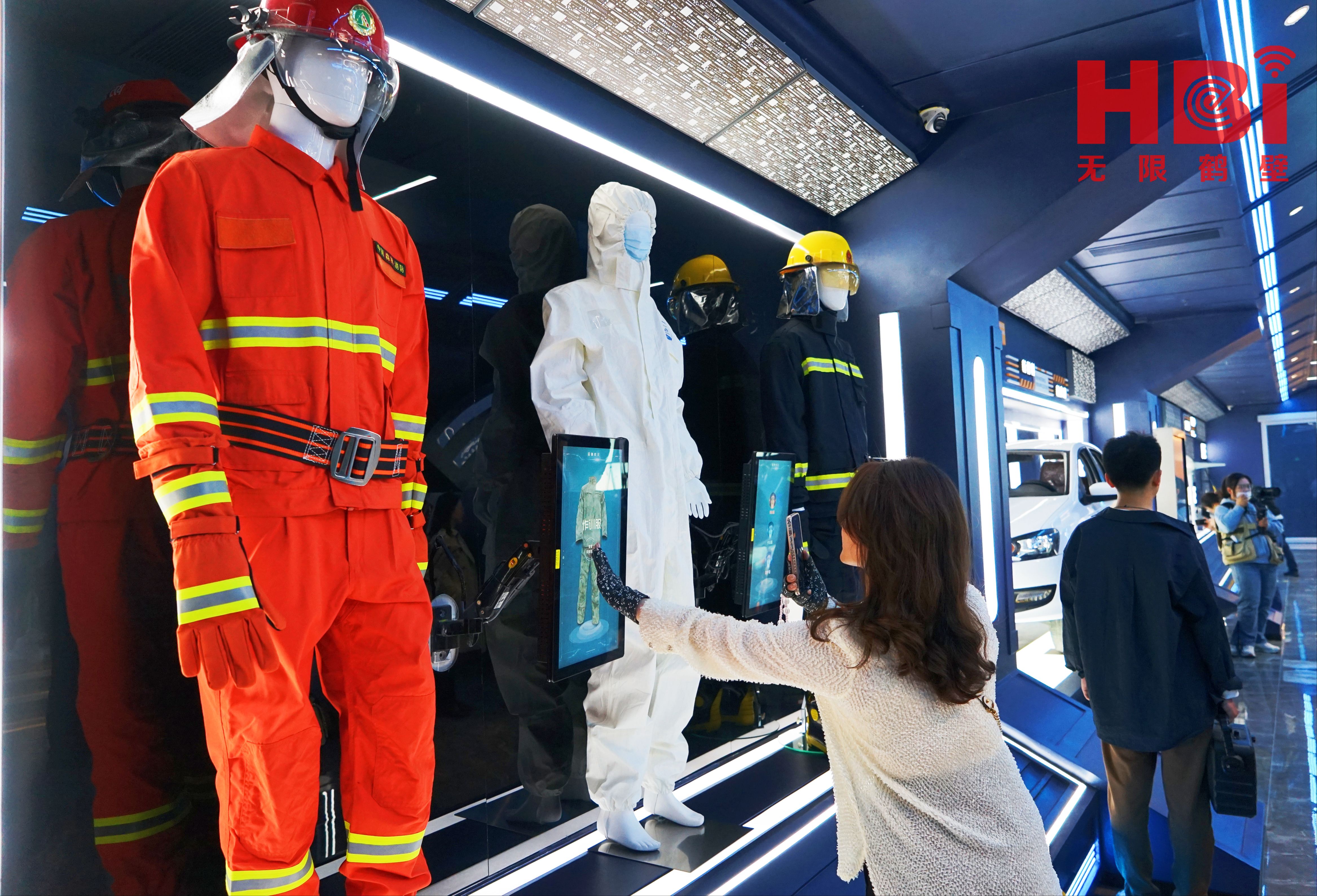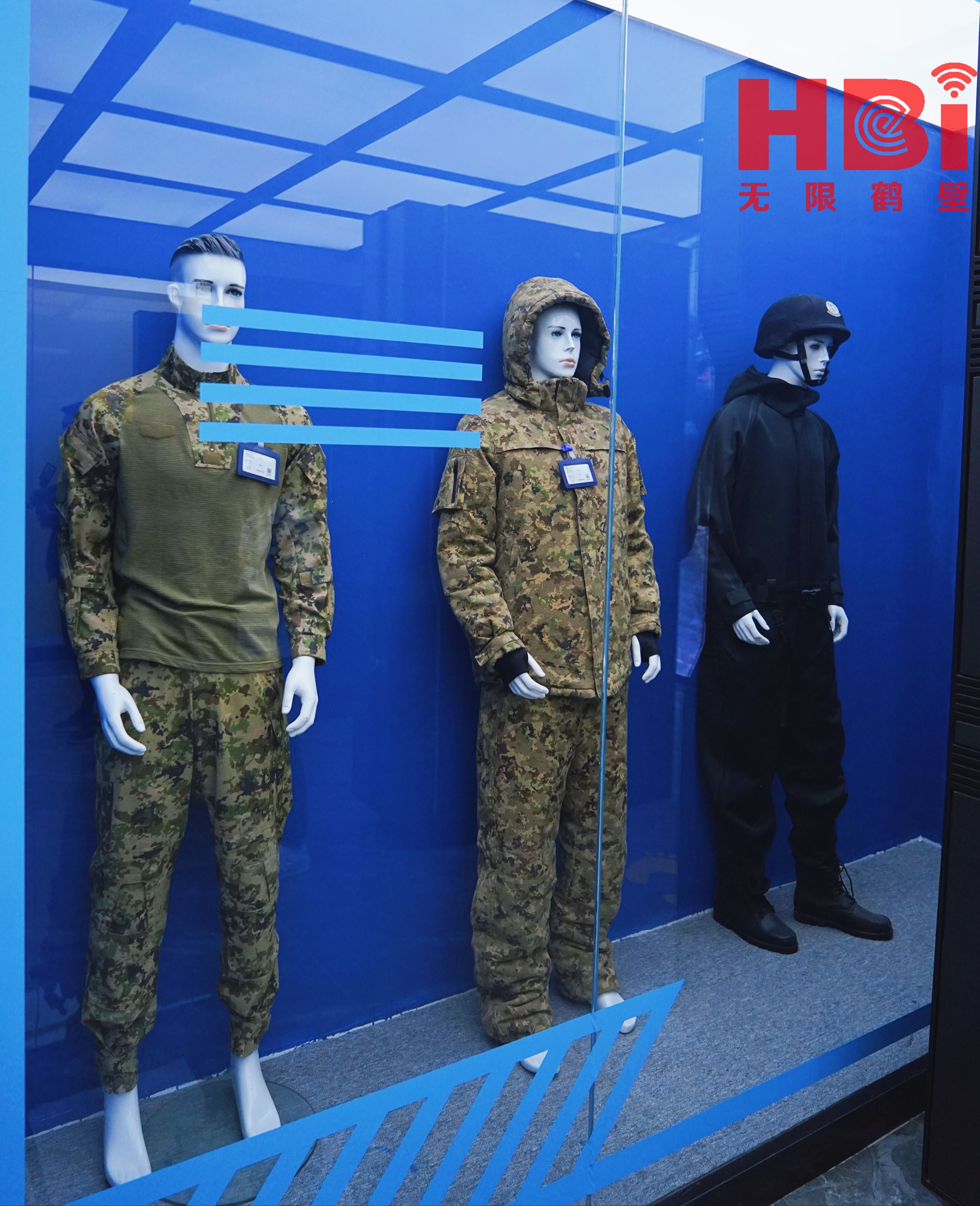 中维化纤展厅内的军工服装。闫磊 摄