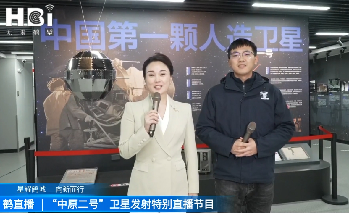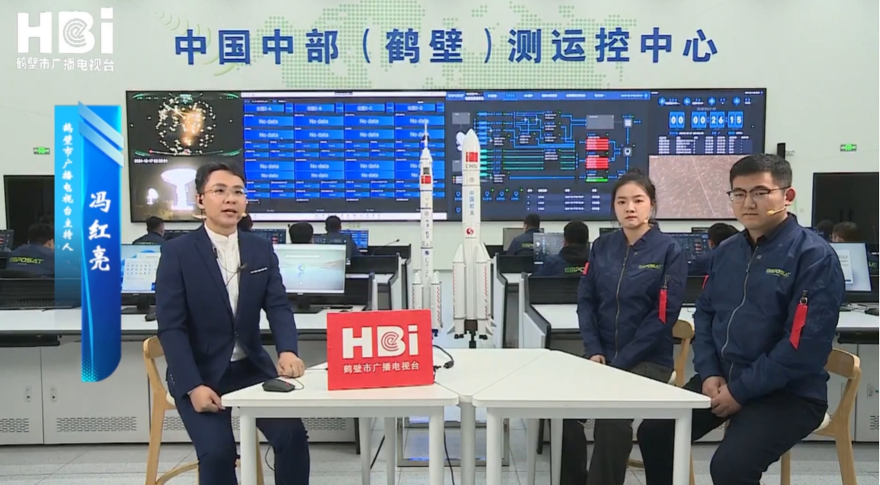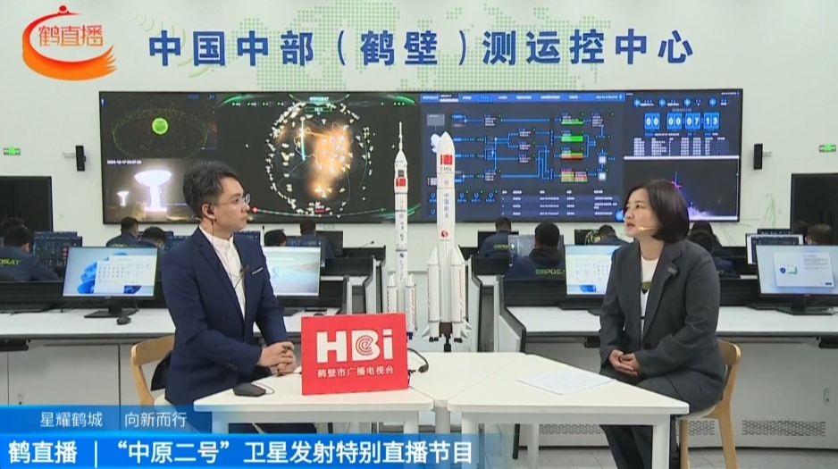 鹤壁市广播电视台推出“中原二号”卫星发射特别直播节目,主持人冯红亮对话北京航天驭星科技股份有限公司系统总体部副部长张春悦、北京航天驭星科技股份有限公司项目部主任设计师余佳颖。