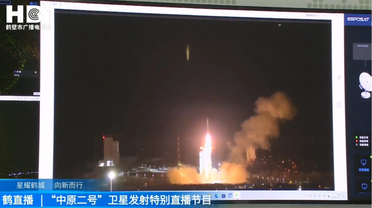 “鹤直播”直播间发布“中原2号”卫星发射升空震撼瞬间