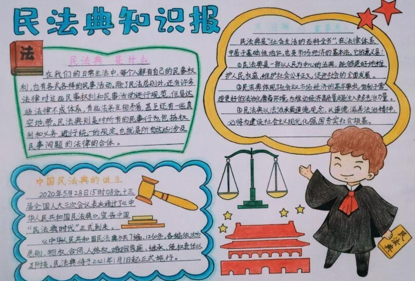 学校利用校园广播、宣传栏、黑板报、手抄报等多种渠道,广泛宣传民法典知识。校园广播每天定时播放民法典小知识,宣传栏展示民法典的重点条文和相关案例,各班级的黑板报也以民法典为主题,设计精美、内容丰富,营造出浓厚的学习氛围。