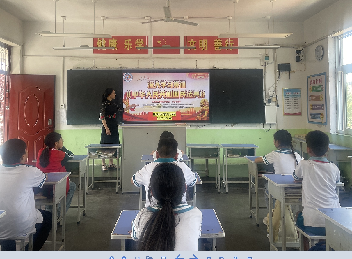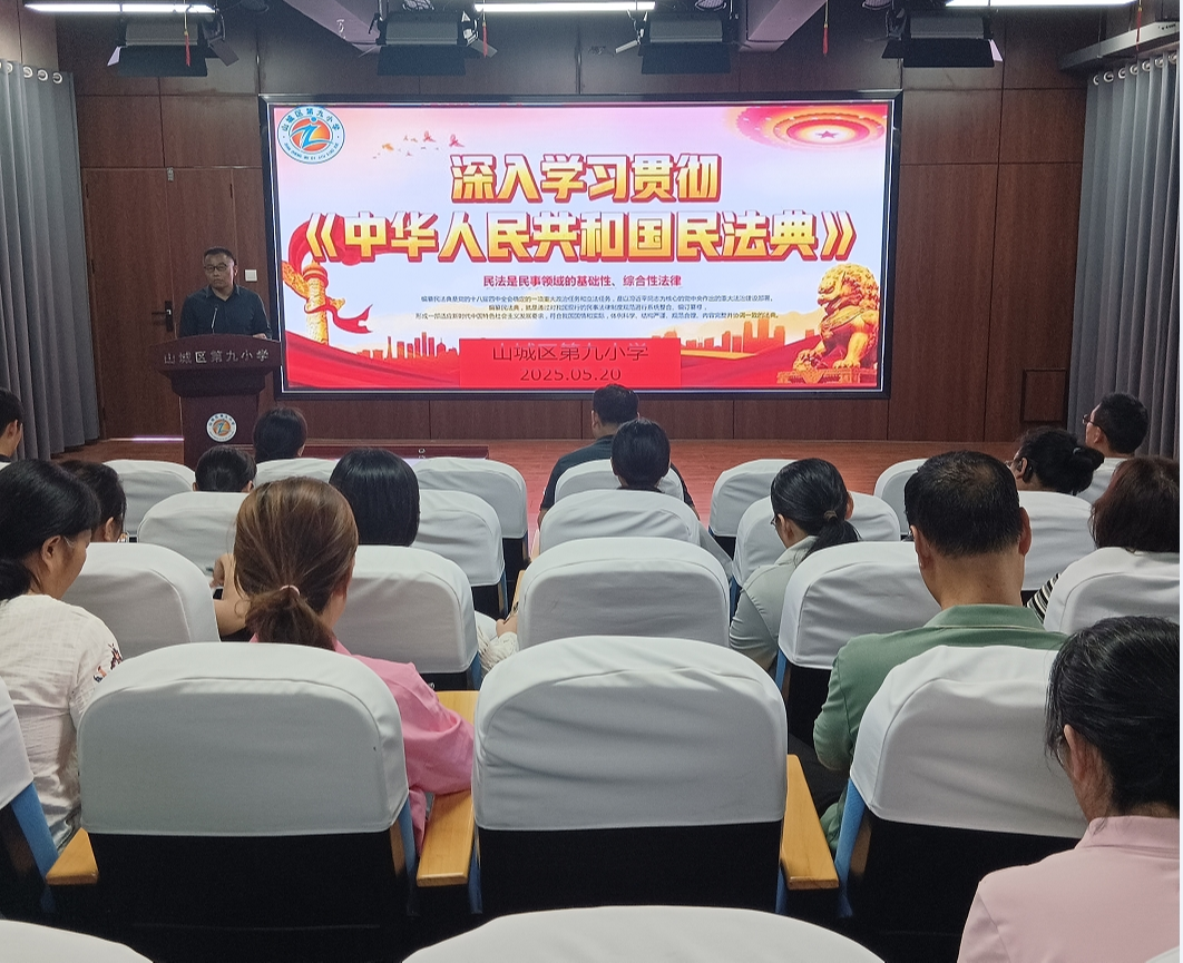 今年5月是我国第五个“民法典宣传月”,山城区第九小学组织开展一系列丰富多彩的民法典学习活动,在学生心中播撒法治的种子。
