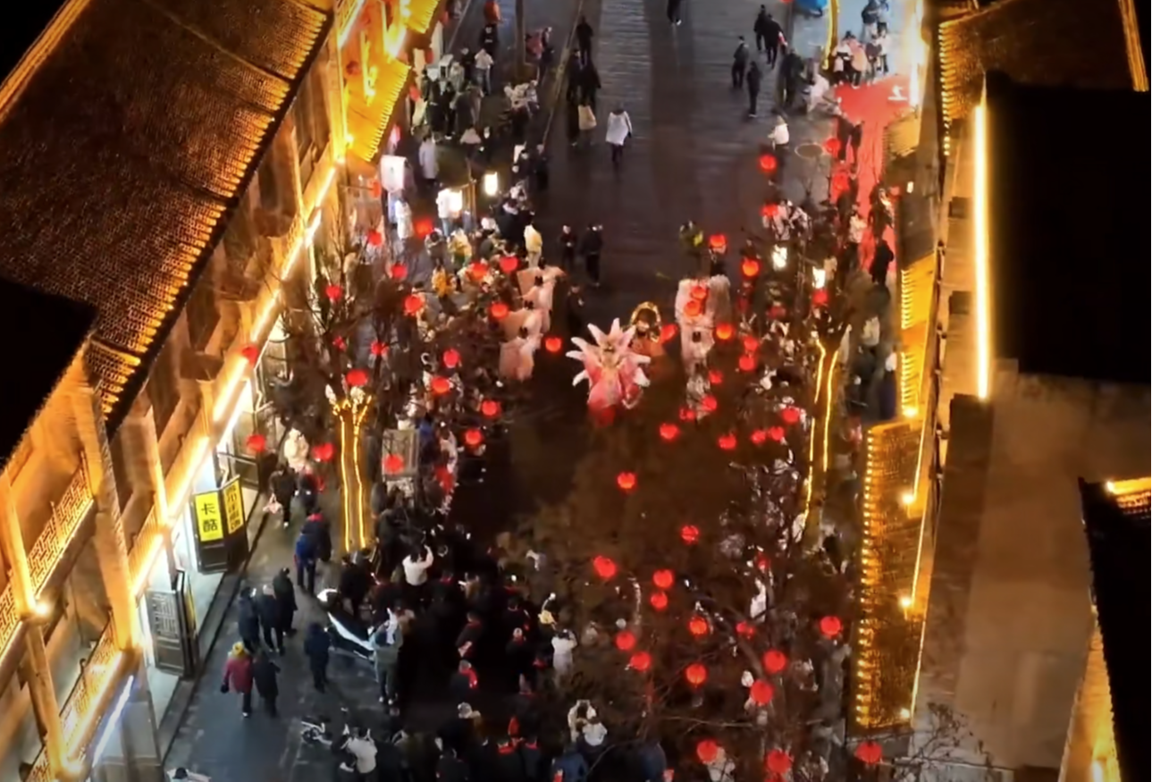 以古城为舞台,城墙为画幕,嘉宾从光影《正月》 “画中门”进入,沿既定路线体验传统与焕新相结合的社火表演,形成移步换景、古今交融的行浸式观演体验。